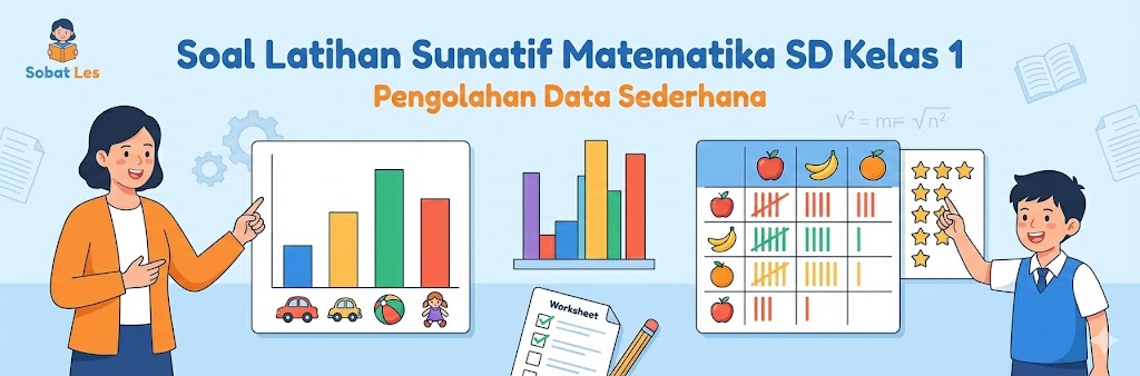 Kelas : Kelas 1 SDMateri : MatematikaTopik : Pengolahan Data SederhanaSemester : Semester 2Jumlah Soal : 22 soal