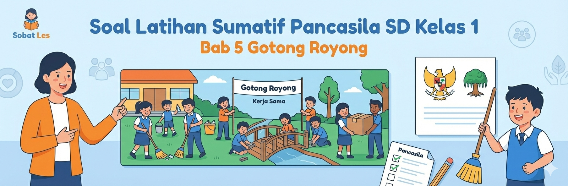 Soal Latihan Sumatif Matematika SD Kelas 1 – Bab 5 Gotong RoyongBy admin / January 23, 2026 Kelas : Kelas 1 SDMateri : PancasilaTopik : Gotong RoyongSemester : Semester 2Jumlah Soal : 20 soal Download
